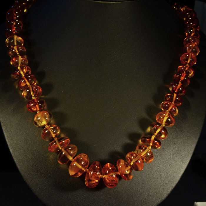 Leuchtend cognac-farbenes Armband aus flachen, sehr schön transparenten Bernstein-Plättchen.