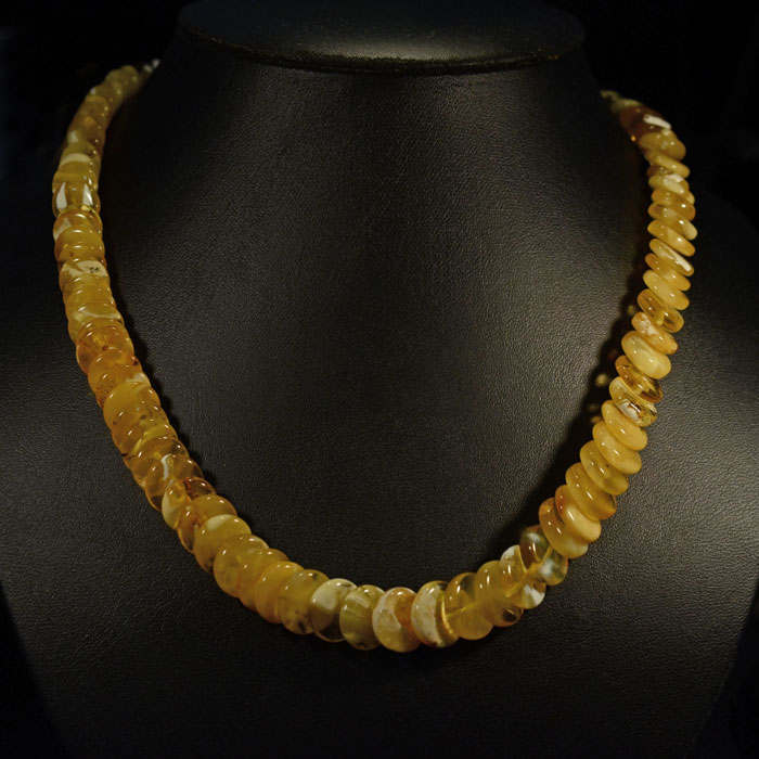 Baby-Armband aus Bernstein in verschiedensten Farbtönen, teilweise sehr klar, aber auch ganz trüb. Die Nuggets sind 7-9 mm lang und auf einem stabilen Gummiband aufgezogen.