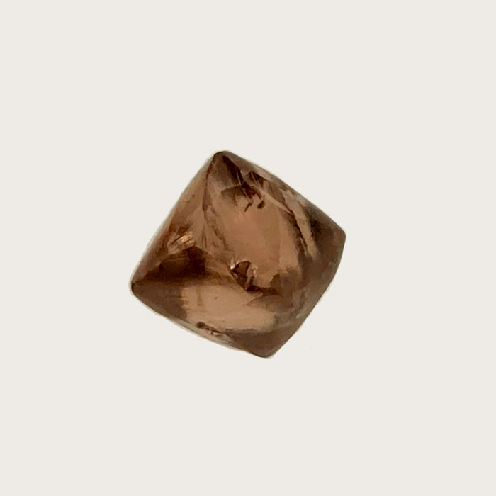 Sehr schön ausgebildeter, teils klarer Diamant-Kristall in warmer Champagner-Farbe und typisch gerundete Kanten.