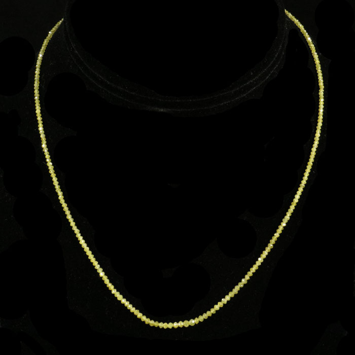 Ein Brillant von 1.04 ct, haarfein am Rand gebohrt und mit einer feinen Öse an einer ebenso feinen Gelbgoldkette (18 kt) aufgehängt.