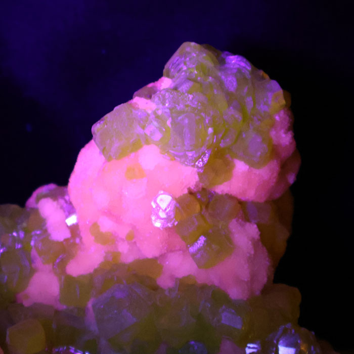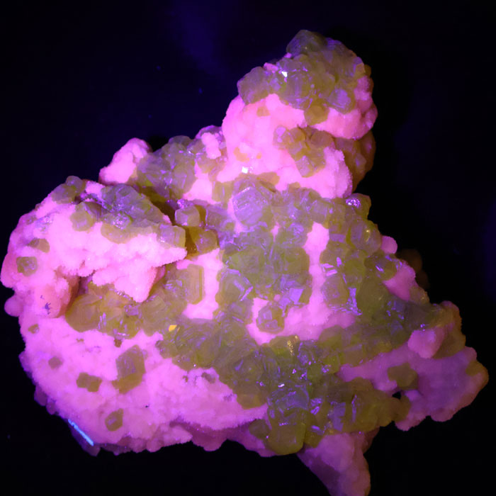 Mineralien Schwefel Schwefelkristalle Aragonit Agrigento UV-Mineralien Fluoreszenz Phosphoreszenz