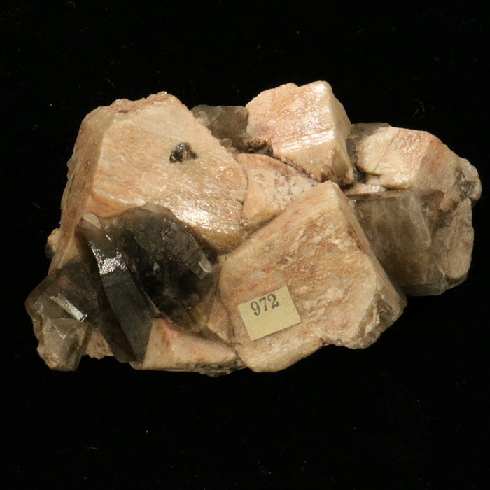 In der Tat ein historisches Stück: hübsche Kombination aus Mikroklin-Kristallen (fälschlicherweise oft als Prthoklas angeschrieben) und recht dunklem Rauchquarz - eine klassische Kombination aus Colorado.