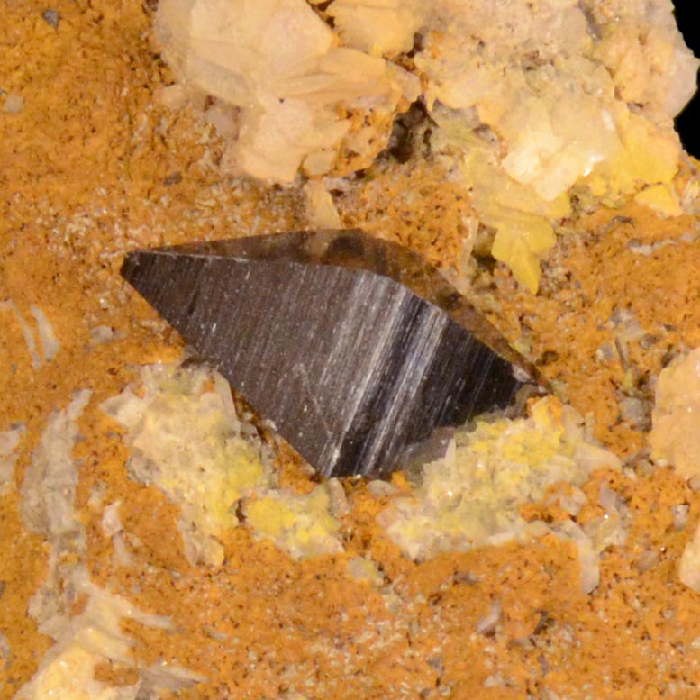 Für Schweizer Verhältnisse ein gewaltiges Stück: Ein perfekter 14 mm langer Anatas-Kristall auf der typischen orange-braunen Matrix von Crapteig.