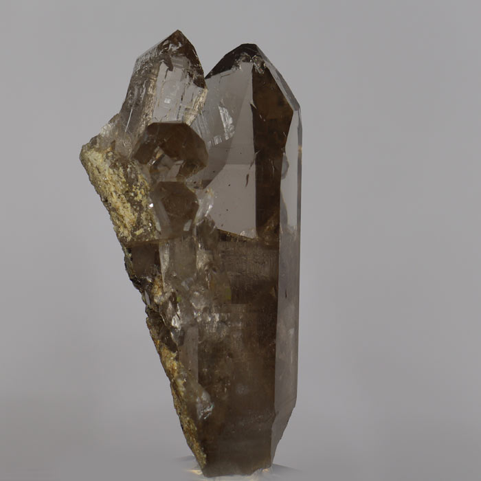Rauchquarz-Spitzen auf Muttergestein, 9.5x4.5 cm