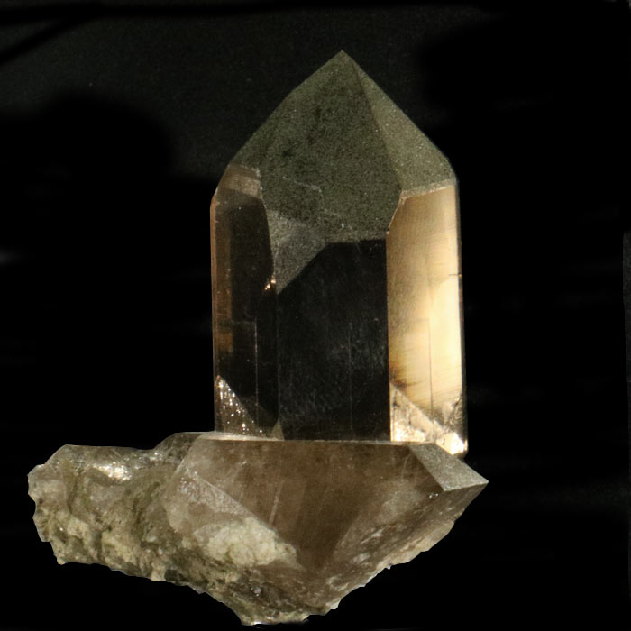 Eine bedeutende, imposante, und dabei doch auch etwas ungewöhnliche Rauchquarz-Spitze aus einer berühmten Kluft: 26 cm hoch, erstaunlich schlank, von schöner Klarheit und entlang der Prismenflächen ungestört. Die Spitze zeigt einige kleine Druckstellen zuoberst, ist aber im Grossen und Ganzen in sehr gutem Zustand.