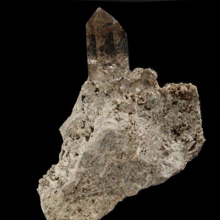 Kleine erlesene Rauchquarz-Stufe mit perfektem, dominantem Kristall, sehr klar, hochglänzend und intakt.