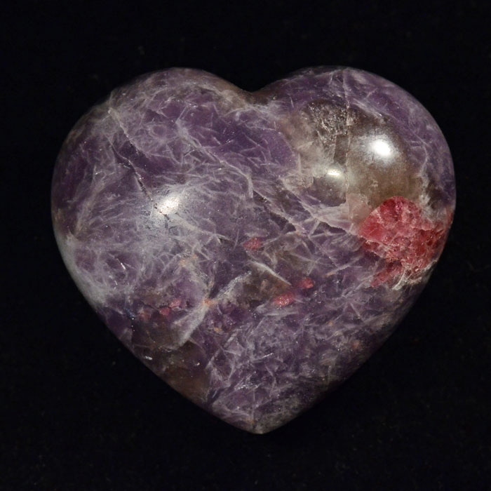 Ein heller Amazonit als dickbauchiges Herz, mit typischer Musterung und mondsteinartigem Schiller.
