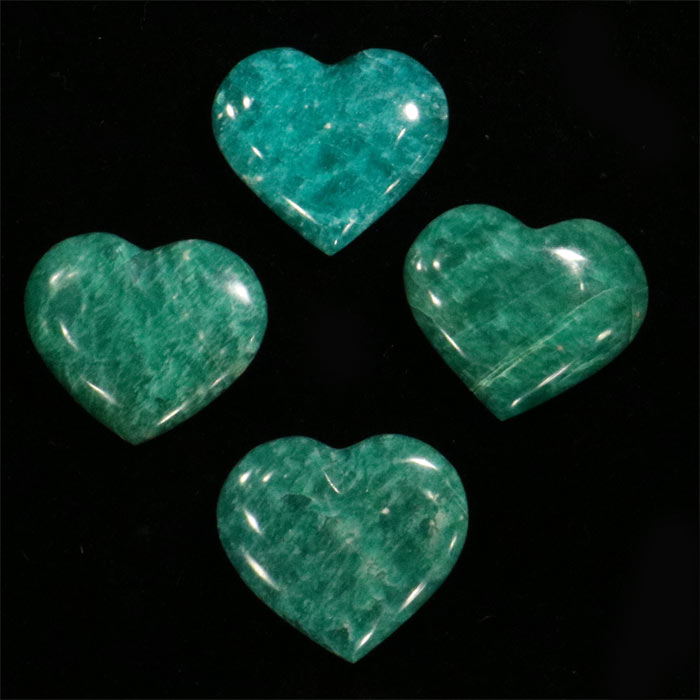 Amazonit von ausserordentlich intensiver Farbe (tief blaugrün bis fast rein grün), geschliffen zu einem flachen, wunderschönen Herz von etwa 4 cm Breite und 3.5 cm Höhe.