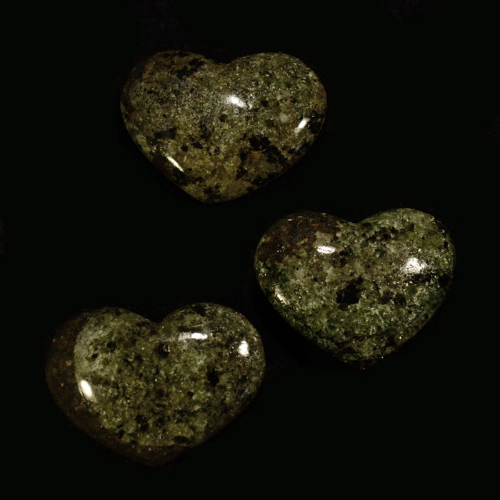 Spezielles Dalmatinerstein-Herz. Dalmatiner-Stein ist geologisch ein Aplit. Die schwarzen Punkte sind ein Vertreter der Amphibol-Gruppe.