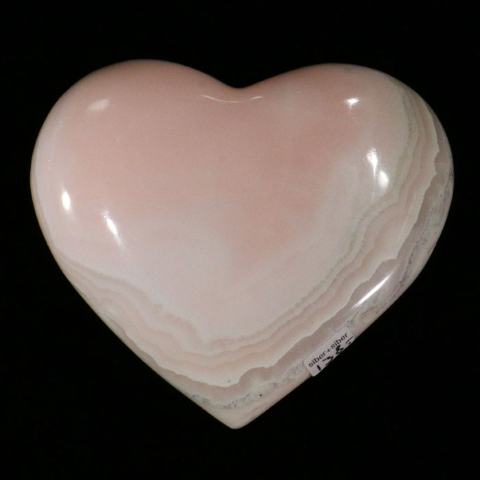 Grosses und bauchiges Herz aus schön gebändertem Manganocalcit (Rückseitig auch mit eingewachsenen Begleitmineralien).