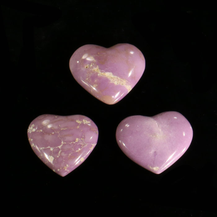 Kleines Herz aus Phosphosiderit in heller, lila bis rosa Farbe, mit feinen Adern von Muttergestein. Es misst ca. 2.5x3.2 cm.