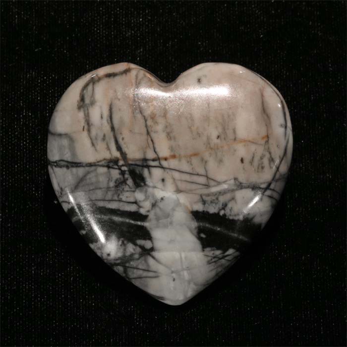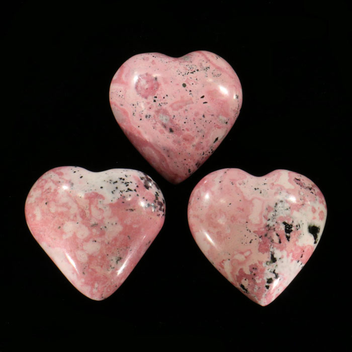 Aussergewöhnliches Herz aus Rhodonit in kräftigem Rosa, welcher mit schwarzen Manganerzen vergesellschaftet ist.