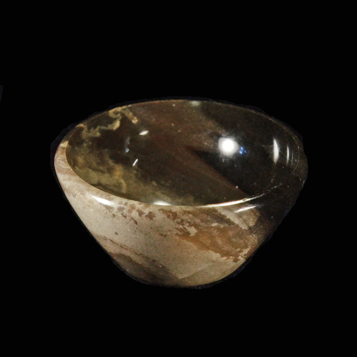 Eine Schale dieses Kalibers war früher nur aus Idar-Oberstein in Deutschland denkbar. Diese hier stammt aus einer Schleiferei in Indien, welche sich auf hochwertigste Steinschalen spezialisiert hat. Das Atelier haben wir an der Sonderschau "Schleifkunst" 2018 vorgestellt.