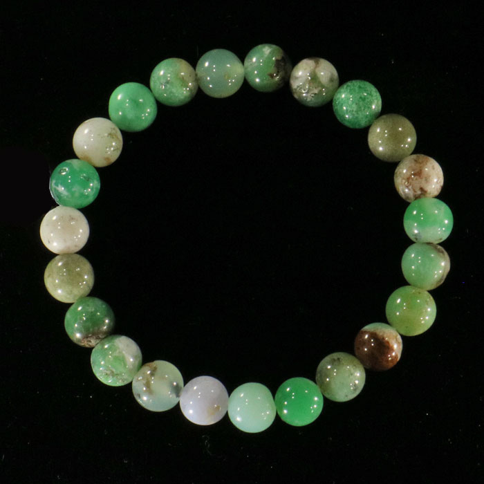 Hübsches Armband mit Rondellen aus Malachit in sowohl recht hellem, als auch dunklerem Grün, mit schöner Musterung. Die Rondellen haben einen Durchmesser von ca. 6 mm und sind auf einem stabilen Gummiband aufgezogen.