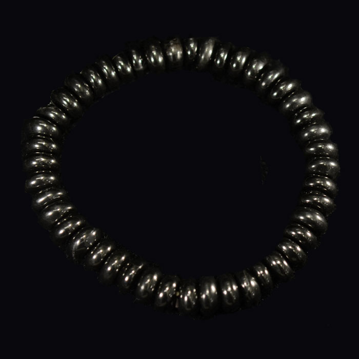 Hochglänzende schwarze Obsidianperlen, aufgezogen auf stabilem Elastik.
