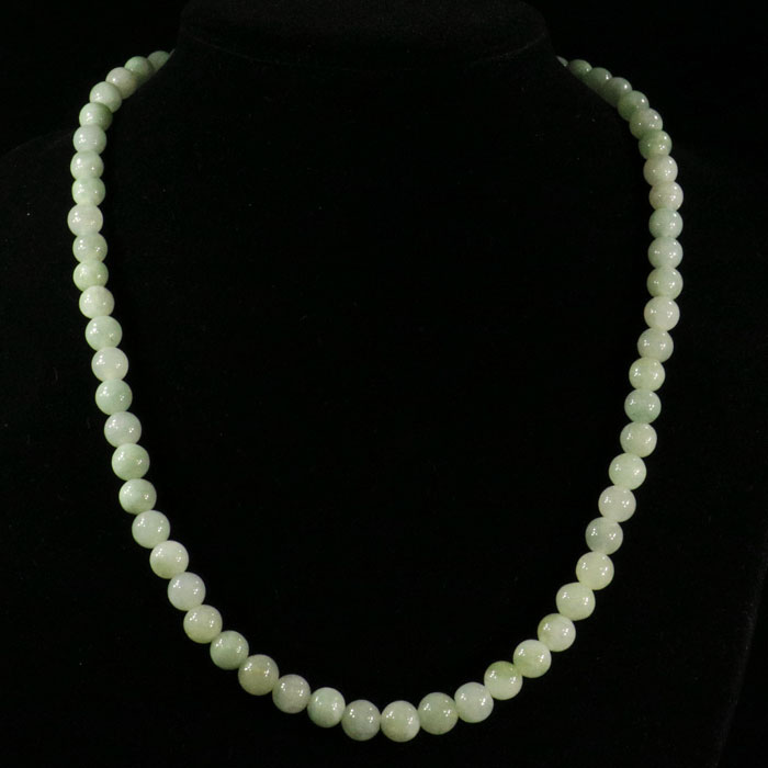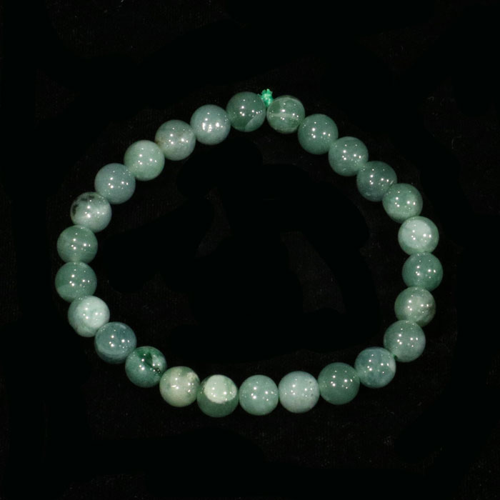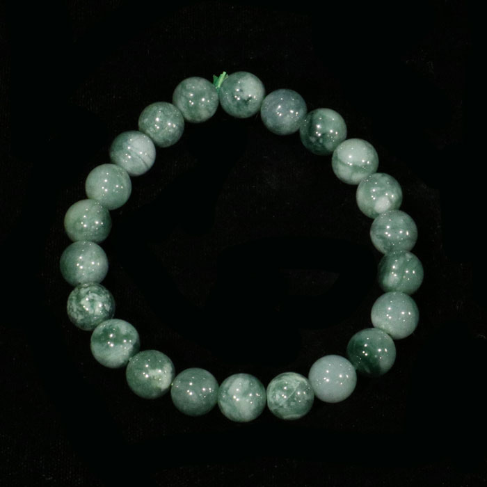 Schönes Armband mit Kugeln aus Nephrit-Jade in dunklem Grün. Die Kugeln haben einen Durchmesser von ca. 12 mm und sind auf einem stabilen Gummiband aufgezogen.