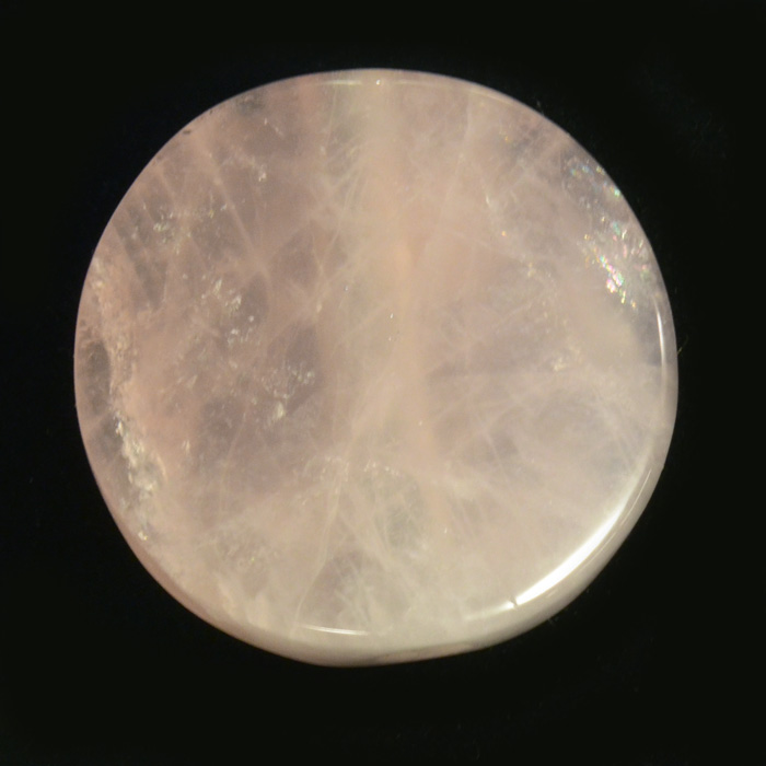 Edel verarbeiteter, gestreifter blauer Chalcedon in Olivenform, facettiert, mit einem rund 2.5 mm grossen Loch, so dass er an einem Lederband oder dünnen Halsreif getragen werden kann.