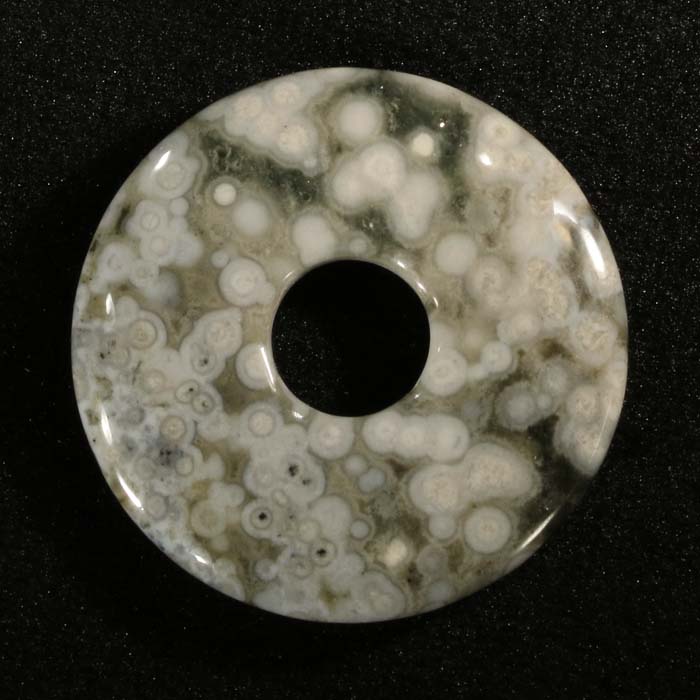 Pi-Scheibe von 30 mm Durchmesser aus Obsidian mit silbrigem Schiller. Dieser wird heute meist Silber-Obsidian genannt.