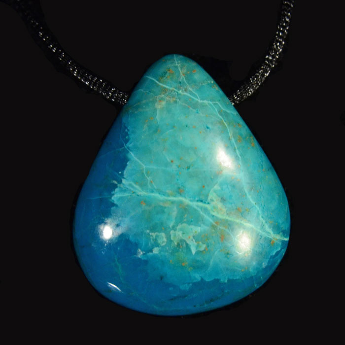Anhänger mit Querbohrung aus Kryolith, vereinzelt mit leichtem Schiller.