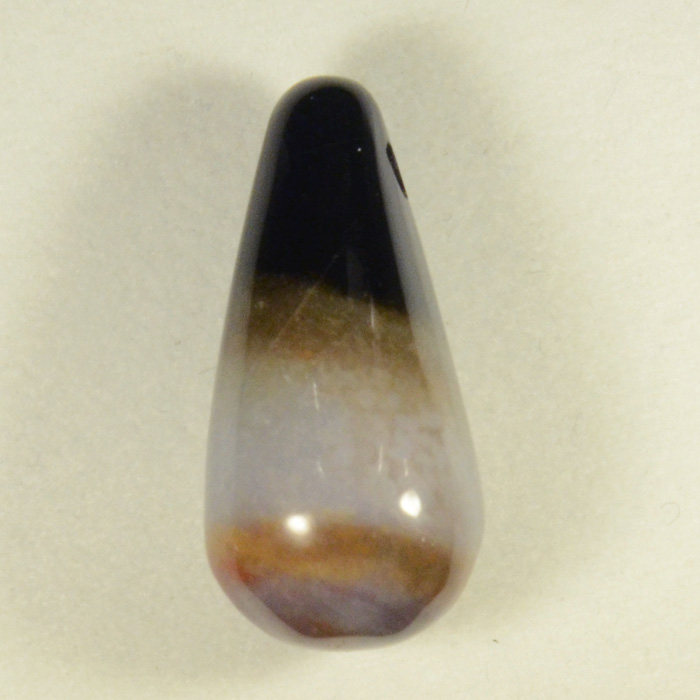 Ca. 32 mm lang, mit 3 mm-Loch, gross genug für ein Lederband.