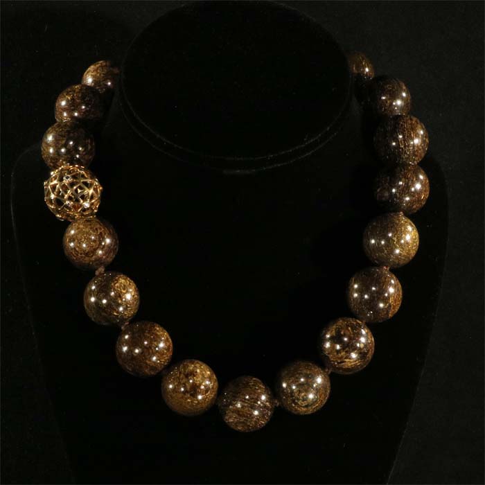 Aussergewöhnliches, prächtiges Collier aus grossen Bronzit-Kugeln, einzeln auf Perlseide geknüpft.