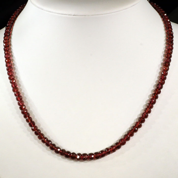 Halskette aus fein facettierten Granat-Steinen. Schöne, helle Bordeauxrote Farbe mit tollem Glanz.