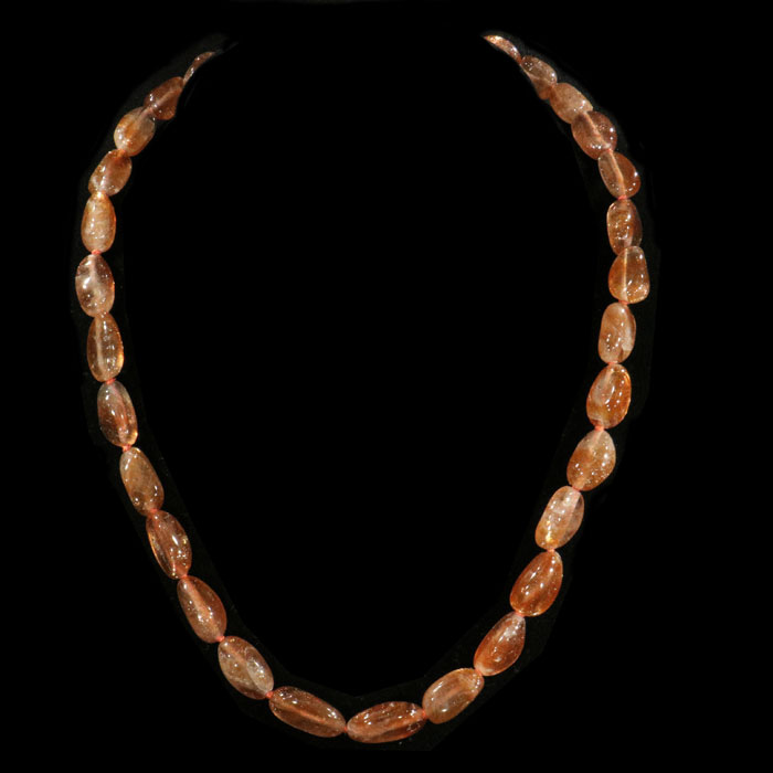 Feines Collier aus kräftig orangefarbenen Karneol-Perlen im Facettenschliff.
