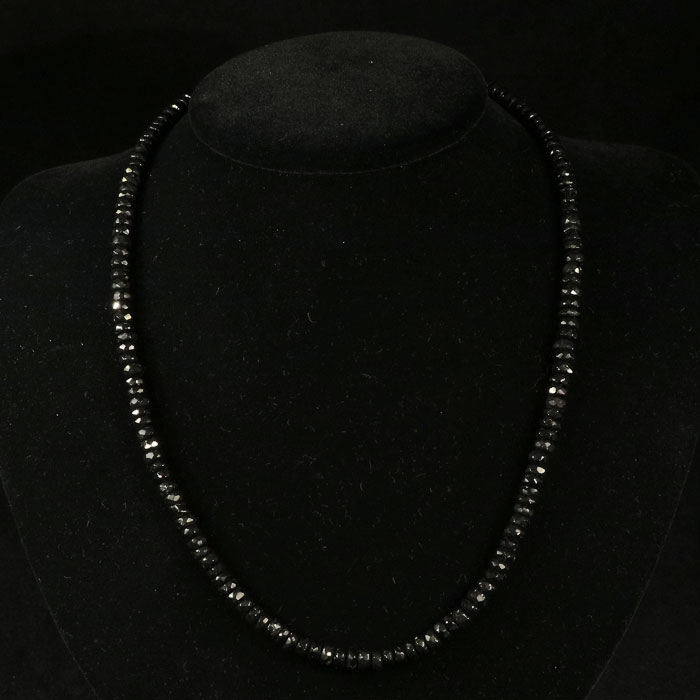 Kette aus Petrovsky-Schungit mit Kugeln von 8 mm Durchmesser. Mit Silberkarabinerschloss.