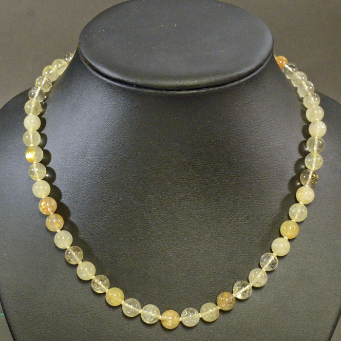 Schöne Kette mit attraktivem Rutilquarz-Kügelchen, Durchmesser 8 mm.