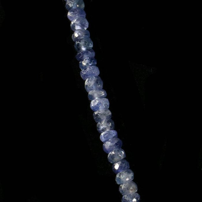 Feine Kette mit facettierten, zulaufenden Rondellen (à 2-4 mm) aus leicht durchscheinendem Saphir in intensivem Mittelblau. Die Kette lässt sich durch ein Verlängerungskettchen von ca. 44 bis 48 cm verstellen, der Verschluss ist aus Silber.