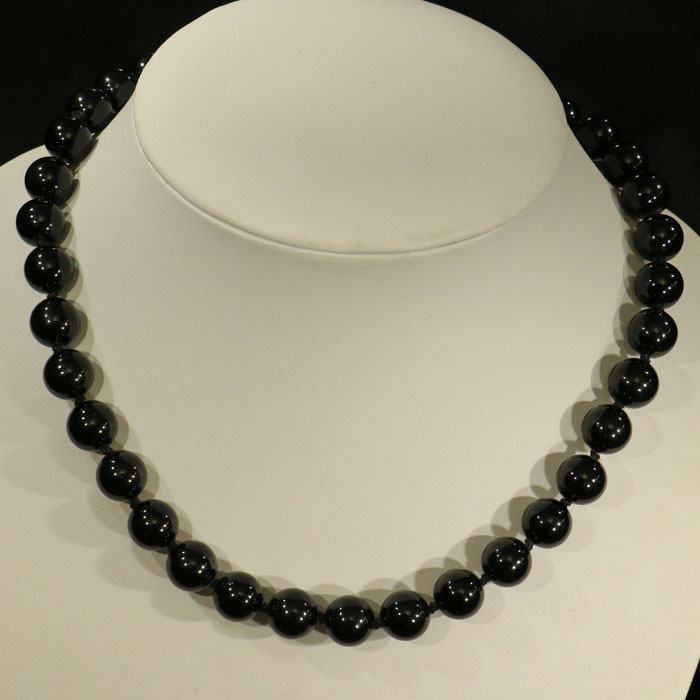 Schörl-Kette, geknüpft, 10mm Kugeln