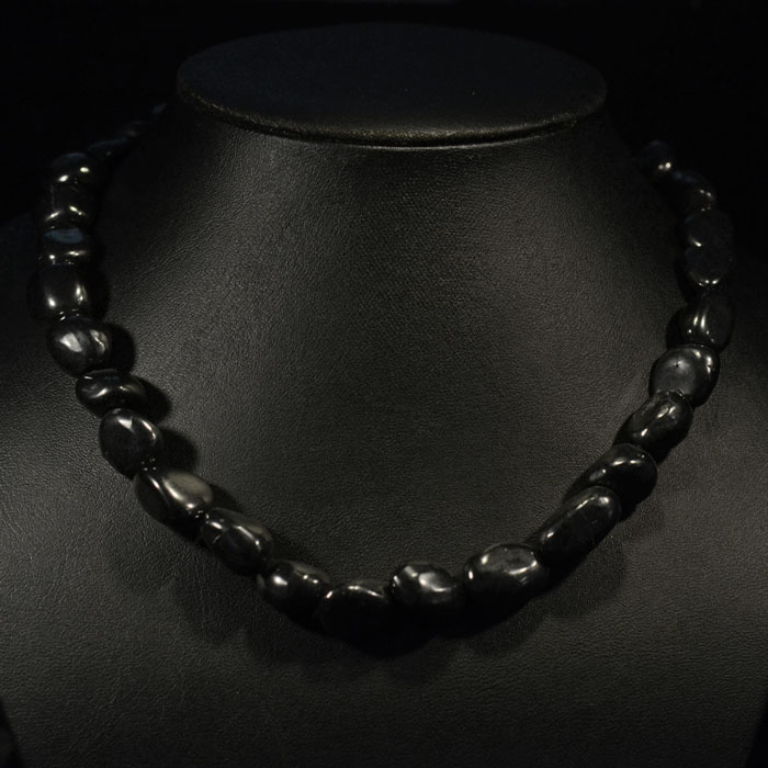 Schwarze Halskette mit nur leicht zu Nuggets geschliffenem Schungit-Schiefer.