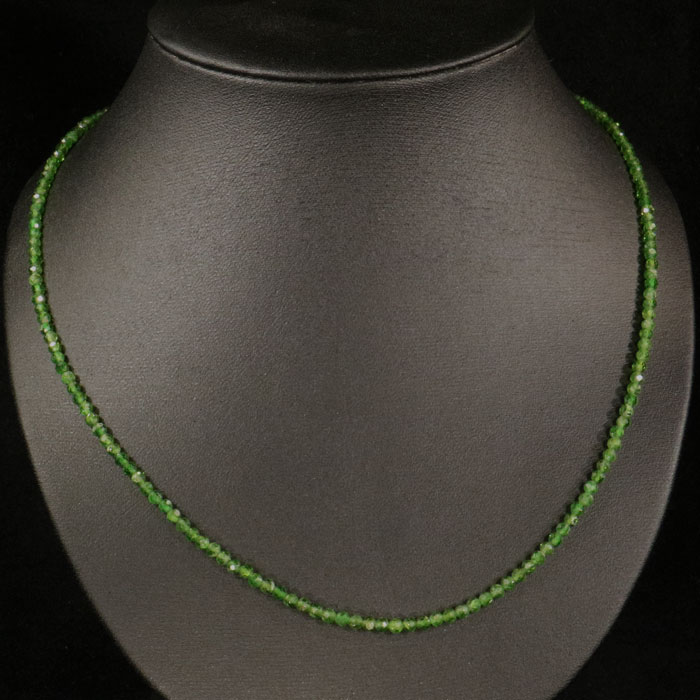 Tansanit-Kette mit facettierten Rondellen von schöner Farbe. Durchmesser bis 5 mm, Länge: 46.5 cm.