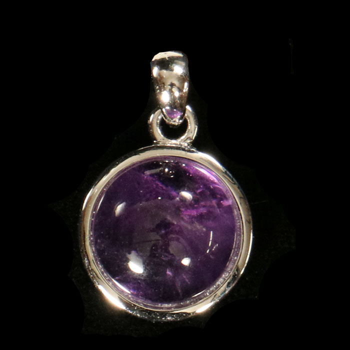 Rund geschliffener Amethyst-Anhänger in einer Fassung aus 925er Silber.
