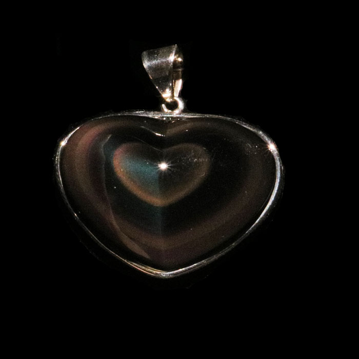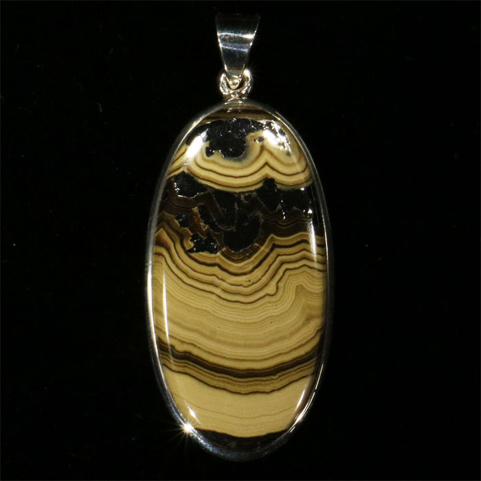 Grosser Silberanhänger mit einem polierten Stück versteinerten Holzes. 7 cm hoch (mit Öse).