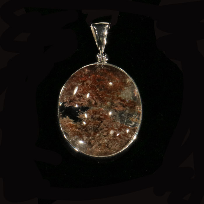 "Lodalith"-Cabochon mit schönem Einschlussbild, in eleganter Silberfassung. Mit Öse 3.7x2.3 cm.