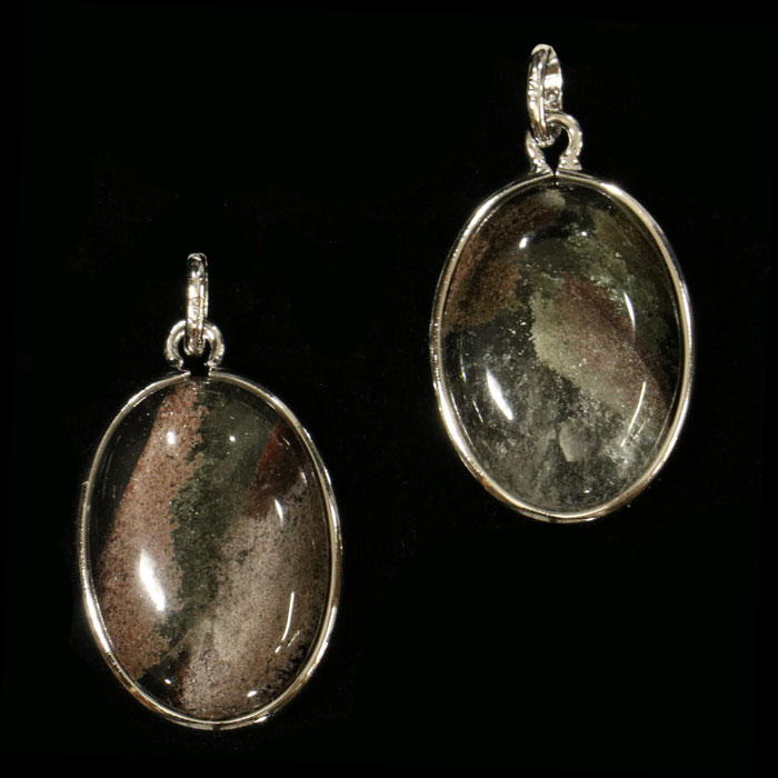 Ein Cabochon gerundeten Dreiecks aus Schalenblende in einer Zargenfassung aus 925er Silber. Schalenblende als Schmuckstück ist eher selten!