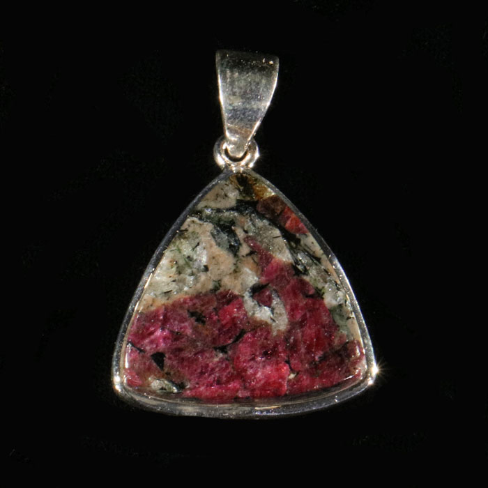 Sonnenstein mit intensivem rotgoldenem Schiller, in einer einfachen, schönen Silberfassung als kleiner Anhänger.