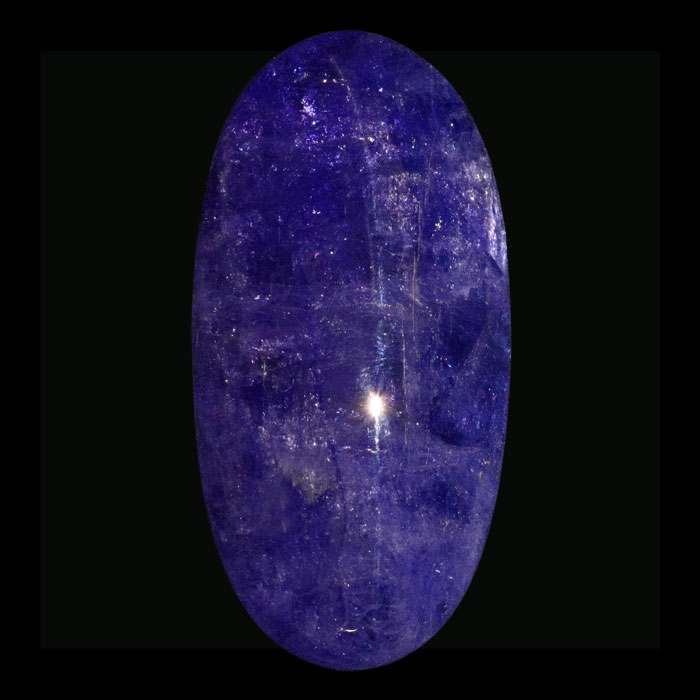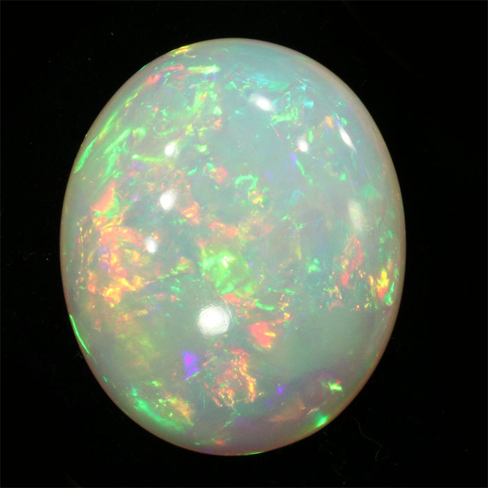 Der schwarze Opal ist von erstaunlich einheitlicher, dunkler Farbe. Er zeigt sogar etwas Farbenspiel: Auf der Rückseite, wo ein prächtiges Blumenmotiv zu sehen ist, sind mehrere grüne Farbreflexe vorhanden.