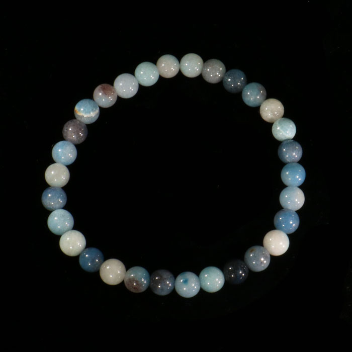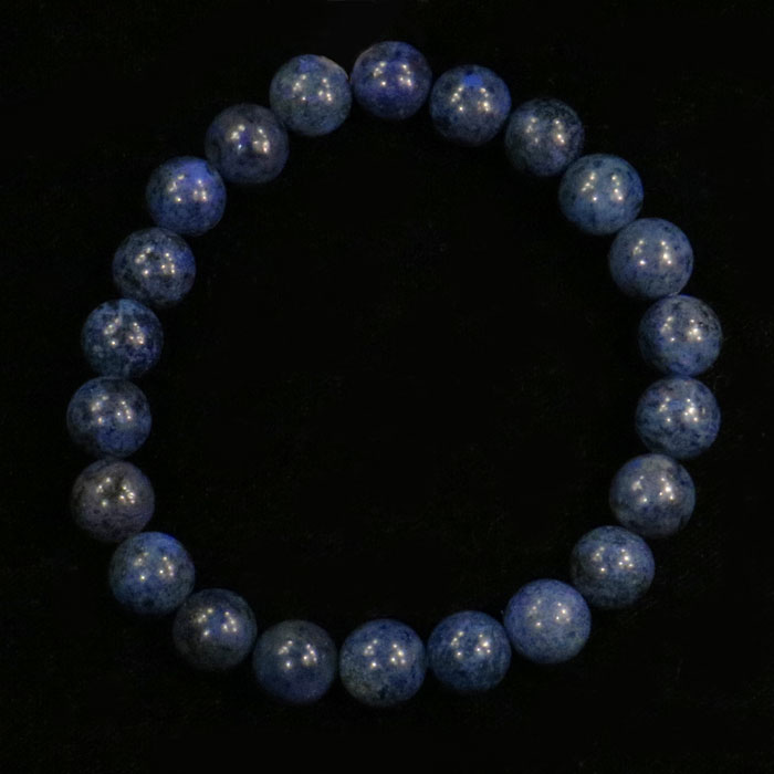 Dumortierit-Armband mit Kugeln à 8 mm in schöner Qualität. Sehr gut verarbeitet und von schönem (mal hellerem, mal dunklerem) Blau. Kleine Abweichungen in Farbe und Textur sind möglich.