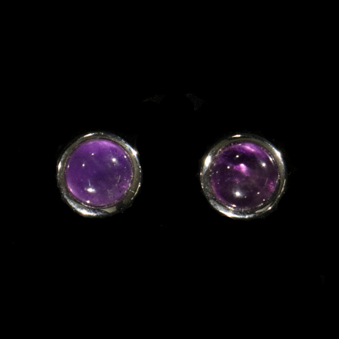 Ohrstecker aus Amethyst in einer Zargenfassung aus 925er Silber. Die Steine haben einen Durchmesser von 6 mm.