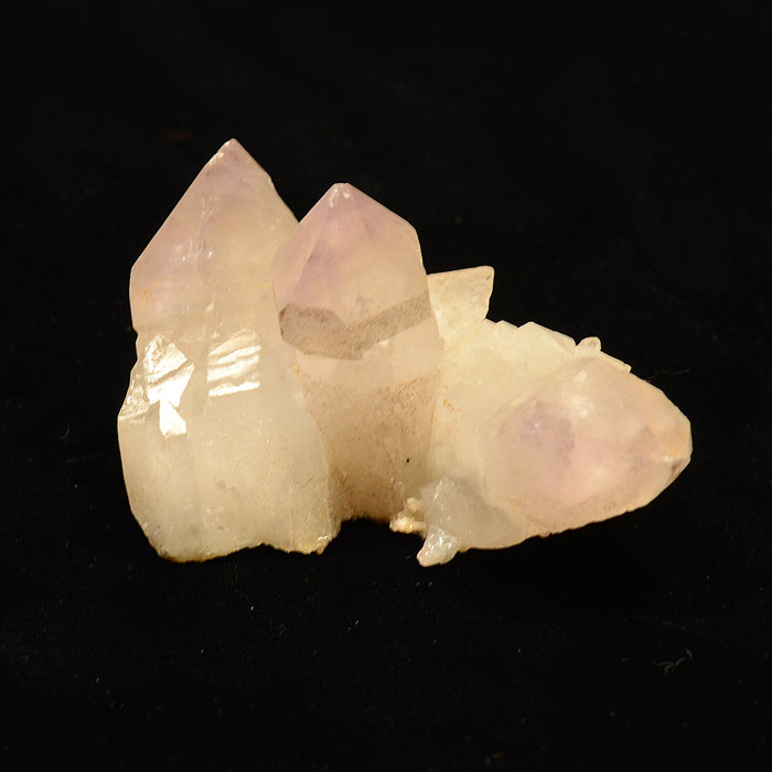 Hier ist die Fundstelle die Besonderheit: Eine kleine Stufe mit hellem Zepteramethyst aus Alaska! Zarte Amethyst-Farbe an den Spitzen, farblos an der Basis. Mit ganz leichten Schäden an den Spitzen, die aber das Gesamtbild nicht weiter stören. 4x8 cm.