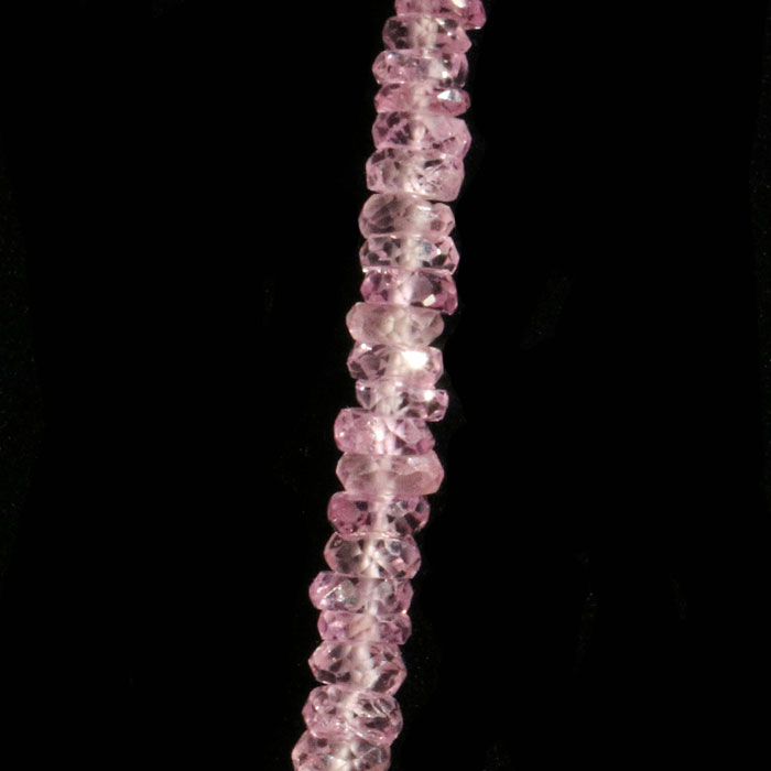 Feine Kette mit facettierten Rondellen (à 5 mm) aus Saphir in schönem Rosaton. Die Kette ist ca. 47 cm lang und hat einen Verschluss aus Silber.
