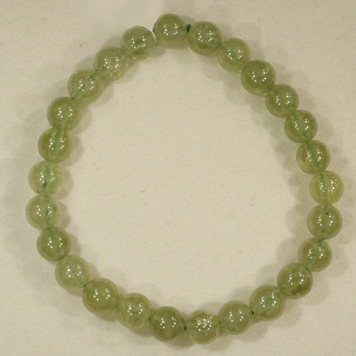 Schönes Armband aus geschliffenem Granat in grüner Farbe, aufgezogen auf stabilem Gummiband.