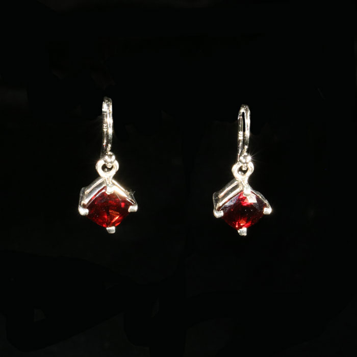 Granat-Ohrstecker, 4-Griff Silberfassung
