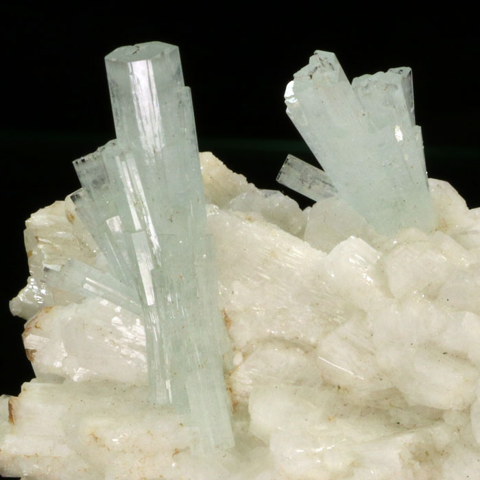 Aquamarin-Kristalle auf Albit, 8x5 cm
