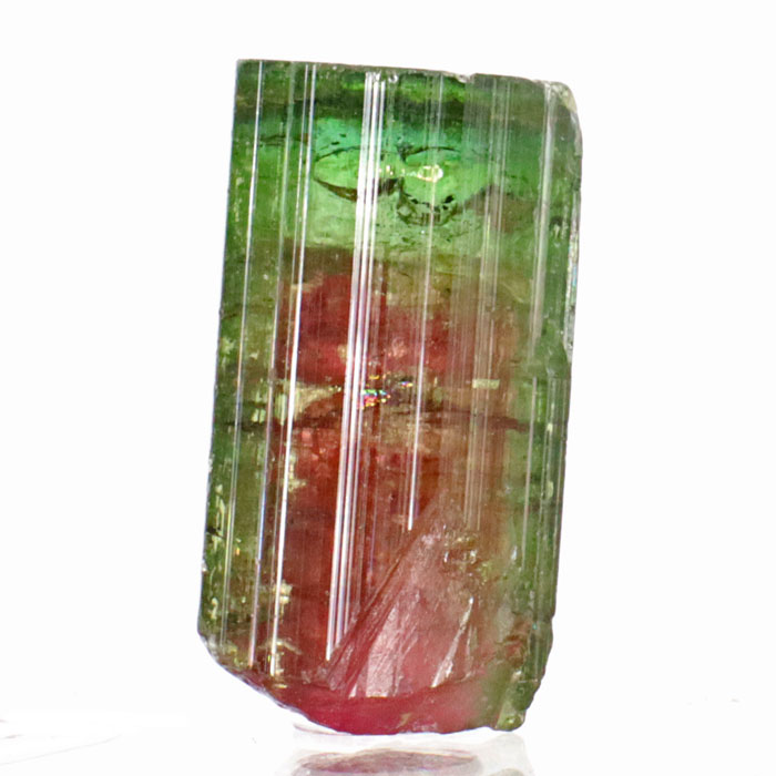 Wassermelonen-Turmalin (aussen grün, innen rot) als schöner, gut ausgebildeter Kristall. Sehr schöne, intensive Farbe.