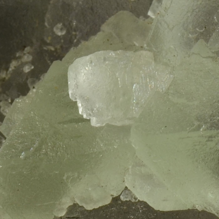 Eine sensationelle Fluorit-Stufe, welche auf handlicher Grösse gleich drei Wachstumsgenerationen zeigt! Die erste Generation besteht aus leicht lilafarbenen Oktaedern, die zweite überwächst in grünlicher Farbe die Oktaeder teilweise. Und auf dieser sitzt ein weisser Würfel (1 cm) als dritte Generation! Äthetisch hübsch, mineralogisch hochinteressant und erst noch preiswert.