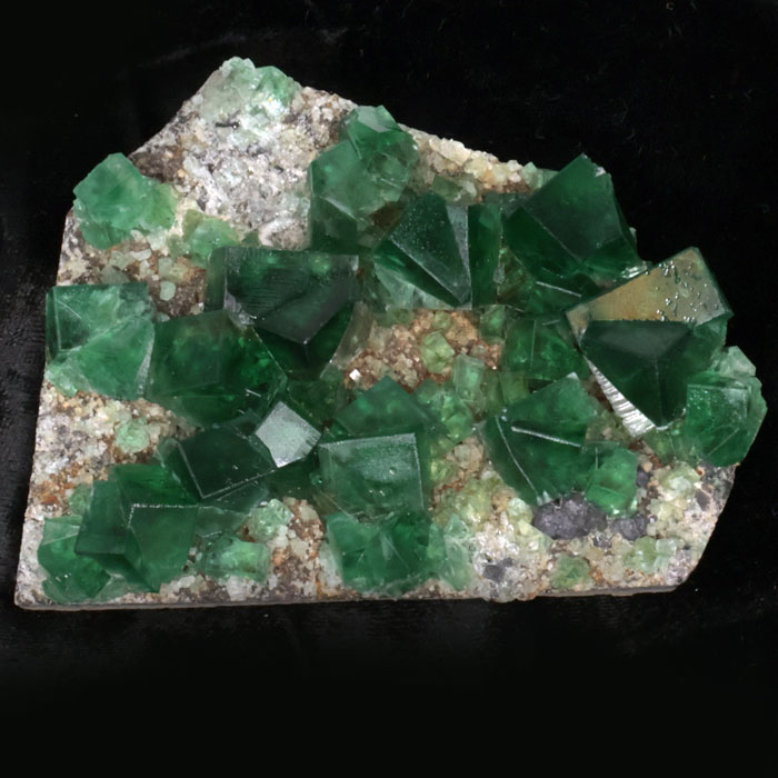 Kleine, schöne Stufe mit klaren, farblosen und intakten Fluorit-Würfeln bis etwa 15 mm Kantenlänge auf derbem weissem Fluorit.