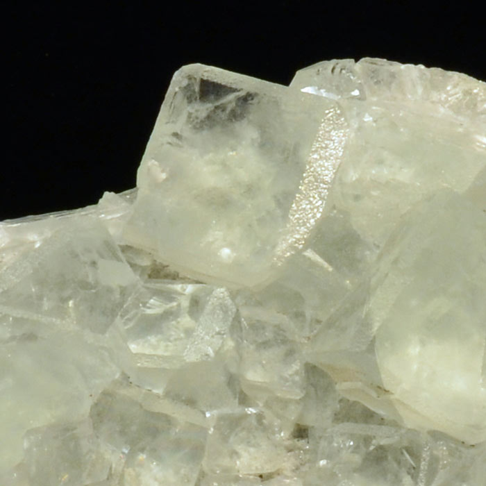 Zart hellgrüner Fluorit, sehr klar und von gutem Glanz als Würfel auf Matrix. Grösseres Handstück von 9.5x20 cm. Ein Kristall unterhalb der Mitte zeigt eine Spaltfläche.